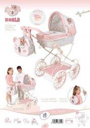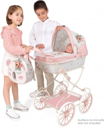 Berig dit barns fantasi med en elegant dukkevogn fra DeCuevas Koala kollektionen. Denne model kombinerer blid hvid med pastelrosa, udsmykket med blomsterprint og en sød krammebjørn. Dit barn får ikke kun et transportmiddel til sin elskede dukke, men også et stilfuldt tilbehør til sine legetøj.