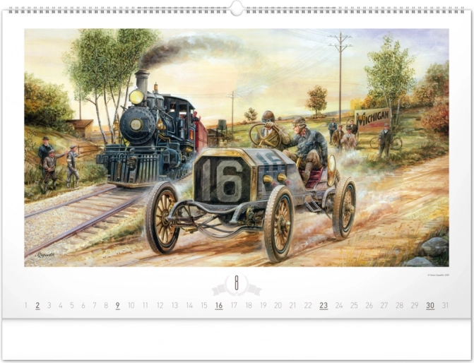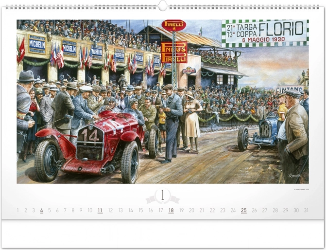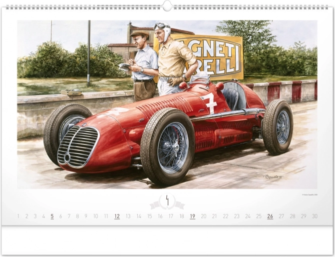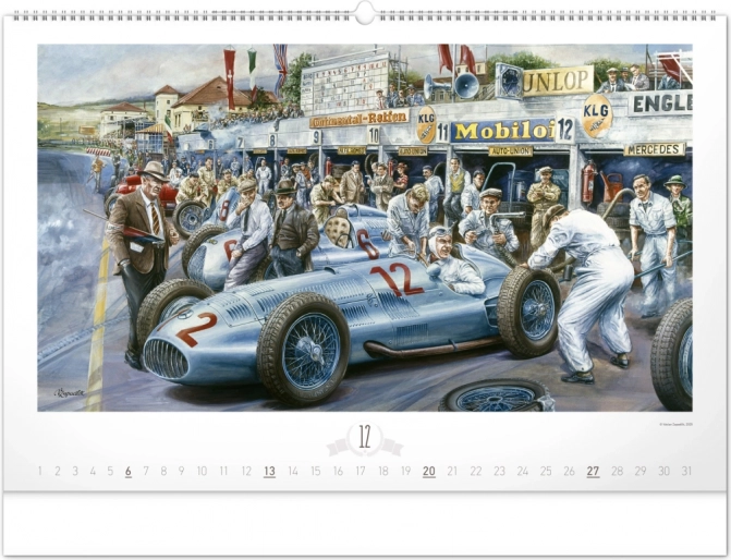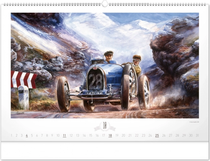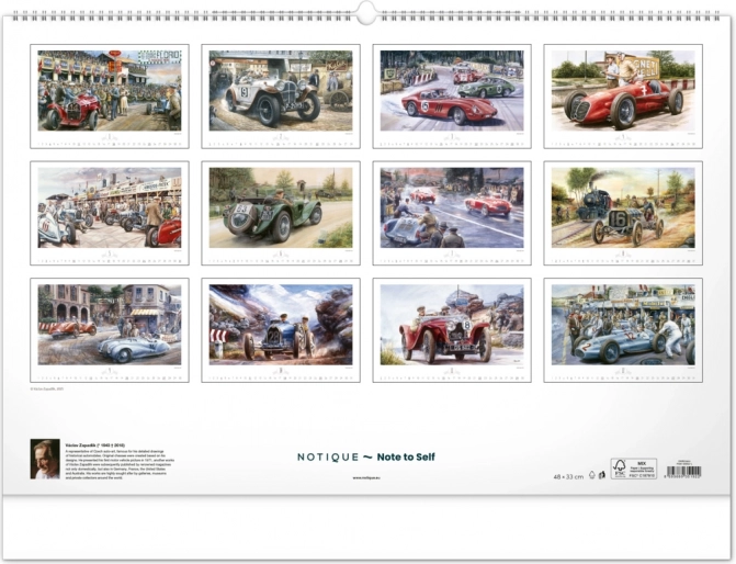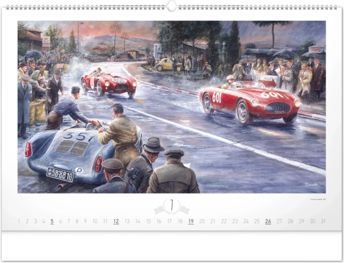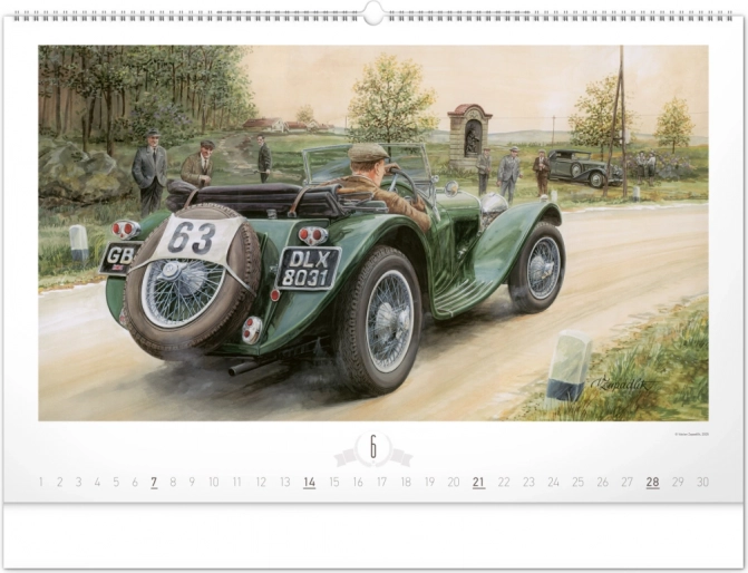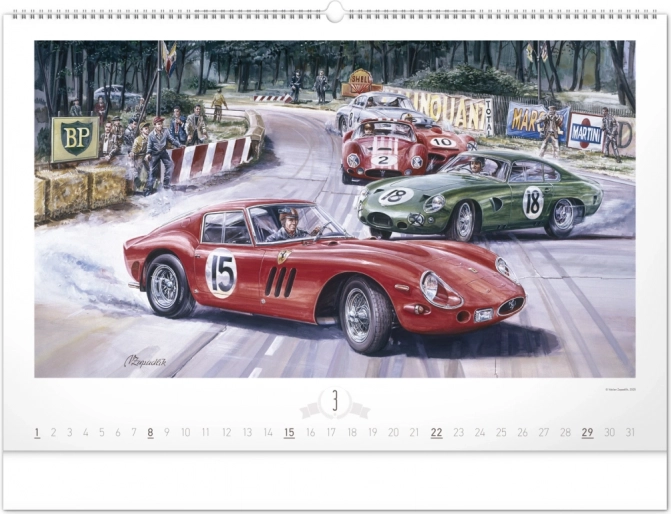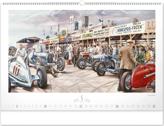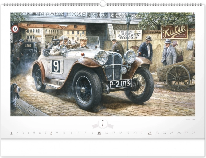 Skønheden ved klassiske sportsvogne og den unikke raceatmosfære fra den tjekkiske illustratorlegende Václav Zapadlík. Denne vægkalender tilbyder et enestående historisk blik på automobilernes verden.