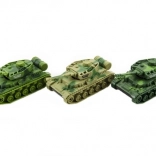 Æsken indeholder 10 stk, og tankene fås i 3 attraktive farver, så børn kan skabe deres egen enhed og udvikle deres legescenarier. De kompakte mål 11 × 5 × 4 cm passer perfekt i en barnehånd.