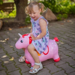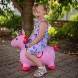 Den pink hoppende enhjørning fra Woopie er en makker til aktiv leg både inde og ude. Takket være de komfortable greb i form af ører og de brede, skridsikre fødder er turen stabil og sikker. Den farverige manke, den hvide horn og stjernemotivet stimulerer barnets fantasi og gør hvert øjeblik til et sjovt eventyr.