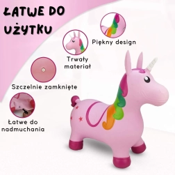 Legetøjet er beregnet til børn fra 12 måneder og kan bære op til 45 kg. Korrekt oppustning (0,3–0,4 bar) sikrer den ideelle elasticitet til både hop og siddestilling. Med den medfølgende pumpe er alt klar på få øjeblikke.