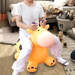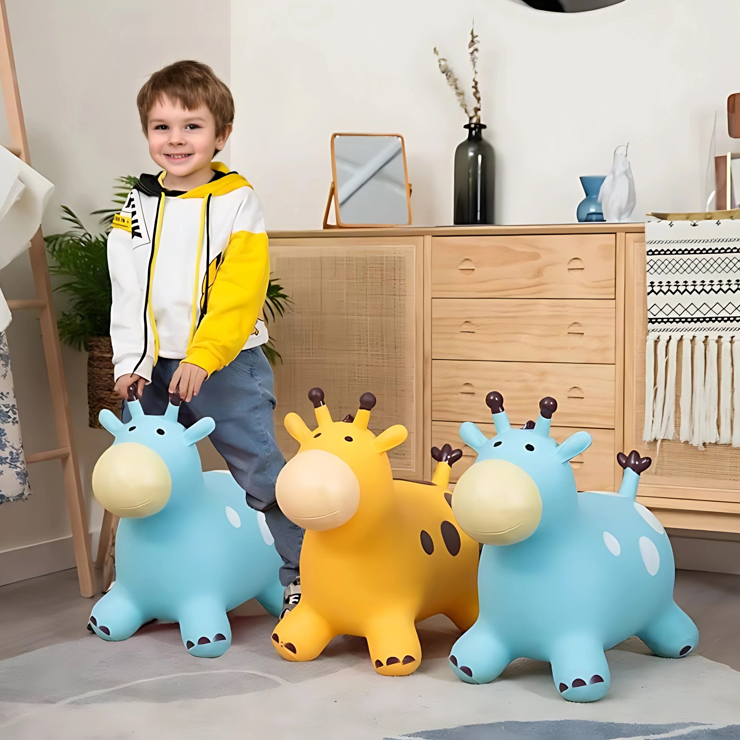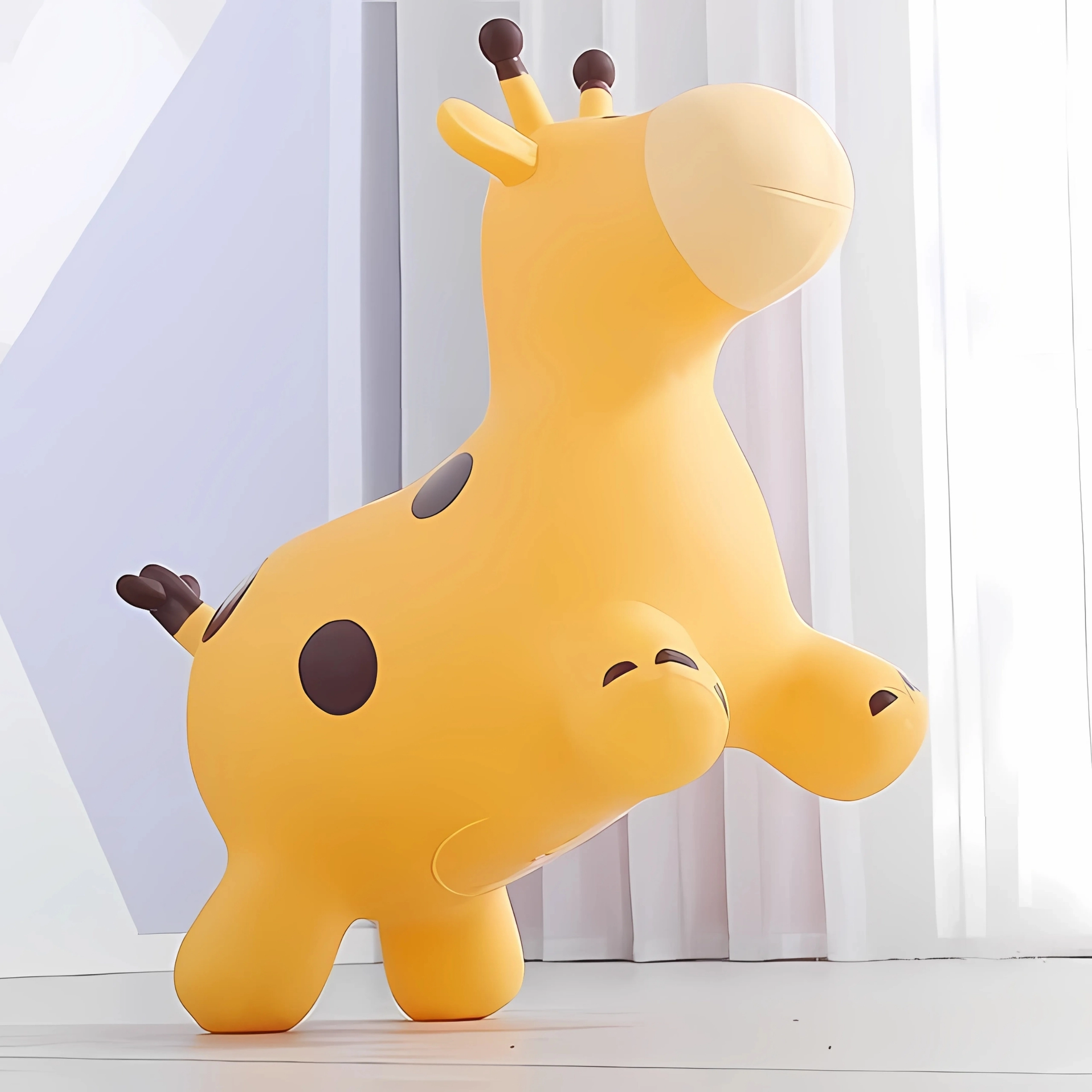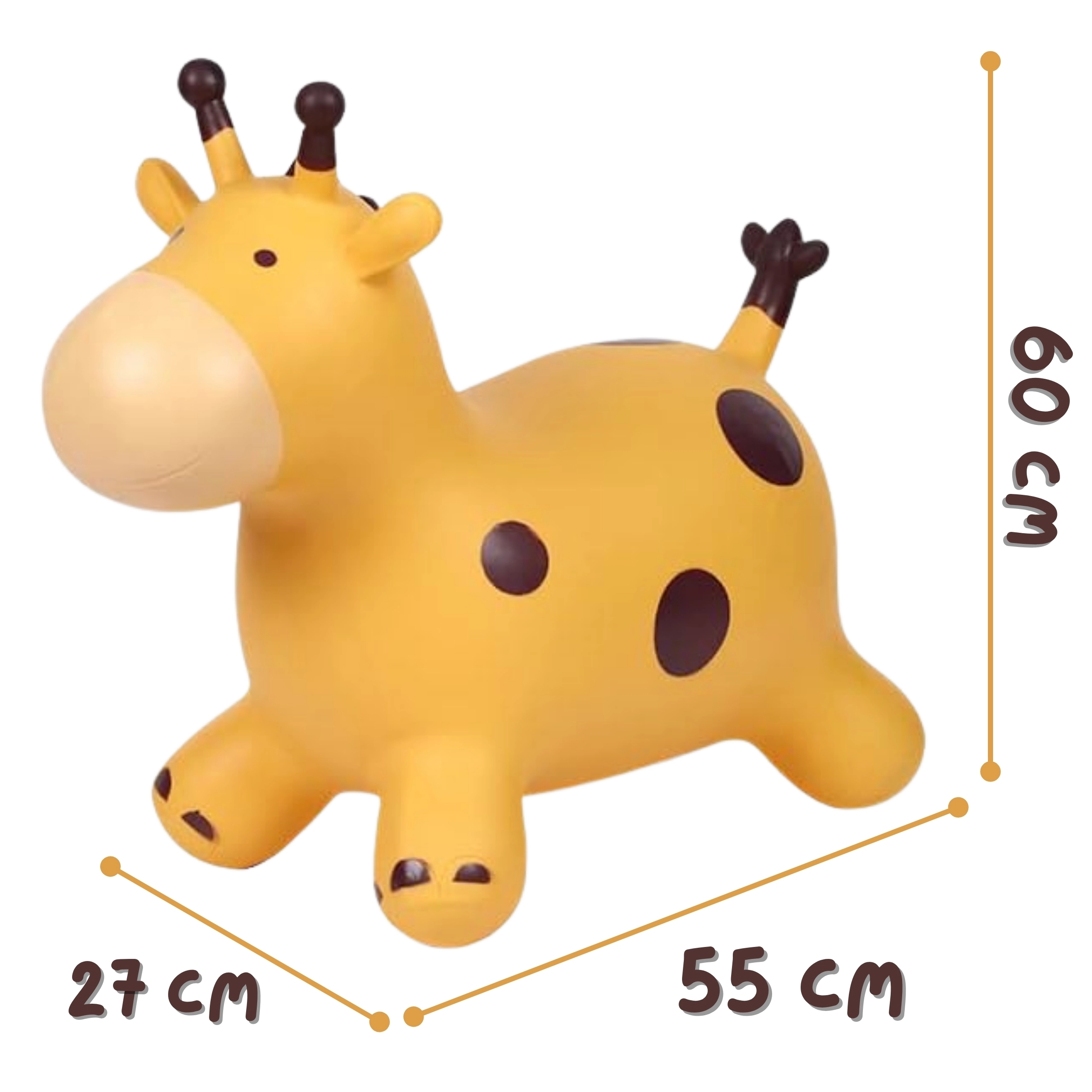 Giraffen er lavet af sikre og holdbare materialer, designet til at give stabilitet og komfort, hvilket opmuntrer til aktiv bevægelse og muliggør timevis af glædelig hoppen både inde og ude.