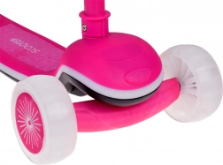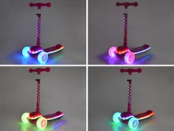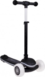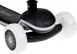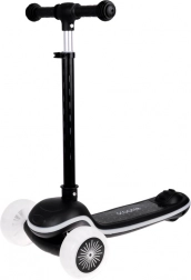 Dette trehjulede balance-løbehjul er ideelt til de første ture i frisk luft. Styring ved kropshældning (lean-to-steer) hjælper børn med intuitivt at udvikle koordination og balance, mens den brede, skridsikre trædeflade giver tryghed ved hvert skub. Forhjul, ramme og trædeflade er udstyret med LED-lys, der kan skiftes mellem mange effekter, og et indbygget lydmodul sørger for endnu mere sjov.