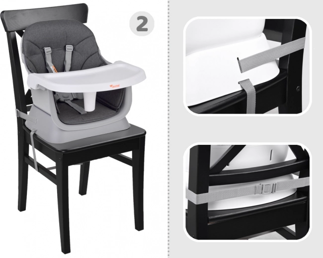 - Booster til spisebordet – takket være fastgørelsesremme og skridsikre fødder kan den sikkert monteres på enhver stol.