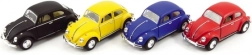 En stilfuld og tro model af den legendariske VOLKSWAGEN Beetle fra KINSMART, som vil glæde både børn og samlere. Takket være karrosseri i metal og pull-back-mekanisme suser bilen af sted, når den slippes. Kompakt længde 13 cm, 4 farvevarianter og kvalitetsfinish i metal og plast. Velegnet fra 3 år.
