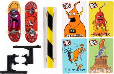Løft dine fingerboarding-færdigheder til næste niveau med Tech Deck dobbeltpakken. I pakken finder du to fuldt samlede boards med realistiske trucks og hjul, en robust forhindring til tricktræning og kort med illustrationer, der trin for trin guider dig fra ollie til grinds. Det kompakte sæt er ideelt både hjemme og på farten og glæder både begyndere og øvede.