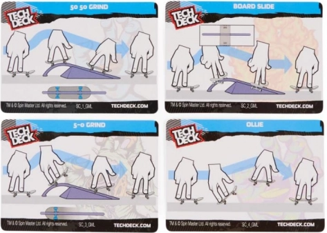 - 2 færdigsamlede fingerboards, 1 forhindring, 4 trik-kort