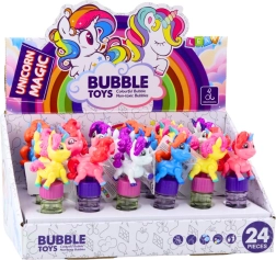 Oplev glæden ved farverige sæbebobler inspireret af enhjørningens verden. Dette sæt kombinerer klassiske sæbebobler med en charmerende enhjørning-figur, som har bevægeligt hoved og ben for mere interaktivitet.