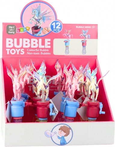 Sæbebobler med enhjørningemotiv er ikke kun klassisk sjov, men giver også en magisk visuel effekt! Dette unikke legetøj på 23 cm er udstyret med en håndoptræksmekanisme, der får enhjørningens vinger til at bevæge sig, hvilket skaber indtrykket af flyvning.