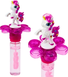 Start den magiske leg med vores sæbeboble-stav, der kombinerer et enhjørningemotiv med blændende LED-lys. Vis dine kreative evner og lav mange bobler på én gang takket være den specielle stav med tre åbninger.