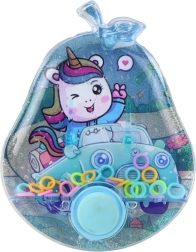 Vandspillet bruger ingen batterier, det fungerer udelukkende ved tryk, hvilket udvikler barnets færdigheder og motoriske koordination. Det farverige enhjørningemotiv og den gennemsigtige kappe med glitrende effekt tiltrækker opmærksomhed og motiverer til leg. Det er en perfekt idé til en lille gave eller belønning i børnehaven. Sælges enkeltvis, og designet vælges tilfældigt.