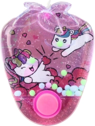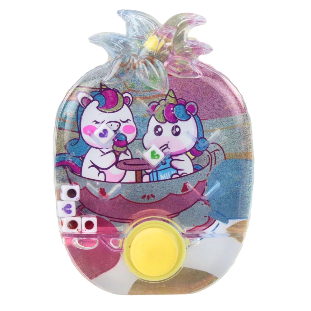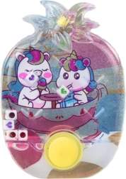 Dette vandspil med magiske enhjørninger er et klassisk legetøj, der i mange år har bragt glæde til børn i forskellige aldre. Takket være de kompakte mål og den enkle mekanisme er det perfekt til rejser, skole eller en gåtur. Spillet går ud på at trykke på knappen, som sætter farvede ringe eller kugler i bevægelse inde i den gennemsigtige beholder med væske. Målet er at placere disse elementer på pinde eller i bestemte felter.