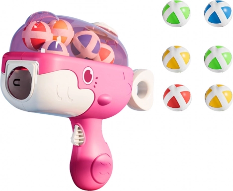 Kuglepistol til børn med velcro-kugler er det ideelle legetøj for dem, der kan lide aktivitet og præcision. Sættet indeholder en pistol, seks farvede kugler med velcro og en poængivende, blød målskive. Mekanismen er enkel og sikker – placer kuglen i kammeret, spænd grebet og tryk på aftrækkeren. Kuglen kan skyde op til 6 meter! Børn kan dermed øve præcision og deltage i pointspil. Produktet er fremstillet af holdbart og sundhedsvenligt materiale.