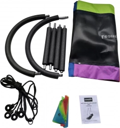 Trampolinen er udstyret med stærke reb med justerbar højde fra 140 til 180 cm, hvilket muliggør fleksibilitet i brugen ikke kun i haven, men også i interiører som børneværelset eller altanen.