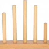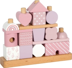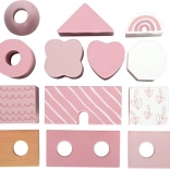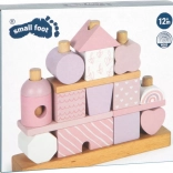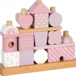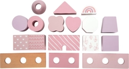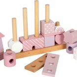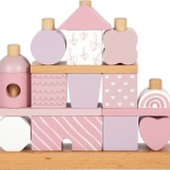 Dette smukke hus med træbrikker vil glæde enhver lille bygmester. Blide pastelfarver sammen med naturlige elementer øger æstetikken, og mangfoldigheden af former og mønstre giver uendelige legevariationer. Takket være de afrundede kanter er det velegnet selv til de mindste børn og bidrager til udviklingen af deres finmotorik og hånd-øje-koordination.