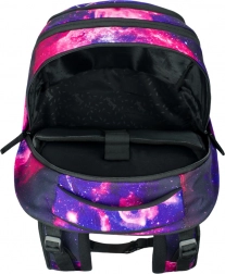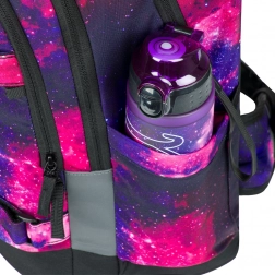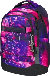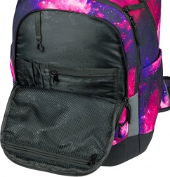 Rygsæk Skate Max Galaxy er en let løsning med en vægt på kun 1150 g og tilbyder et justerbart bæresystem, der kan tilpasses forskellige størrelser. Ideel til elever fra 155 til 185 cm i højden. Den er fremstillet af genanvendt, vandafvisende materiale med reflekterende elementer og inkluderer en aftagelig hofterem. Rygsækken har en tre-rums organizer og en særlig lomme til bærbar computer, suppleret med kvalitetslynlåse fra YKK og et stilfuldt vedhæng.