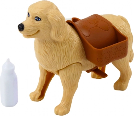 Legens centrum er en stor hund med en taske på ryggen, hvori der gemmer sig tre små hvalpe. Med de medfølgende tilbehør, såsom sutteflaske og ben, kan barnet leve sig ind i rollen som omsorgsfuld dyrepasser, tage sig af dyrenes behov og sikkerhed. Alle dele er lavet af holdbare og sikre materialer, tilpasset små hænder.