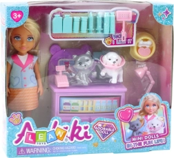 Udforsk verdenen af veterinærpleje med en mini-dukke på kun 13 cm. Klædt i et stilfuldt outfit med sportssko og en bluse med teksten 'Pet' vil børn forelske sig ved første øjekast. Realistisk tilbehør inkluderer også en hund og en kat, som behøver hjælp, samt et lægeskab med masser af udstyr.