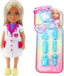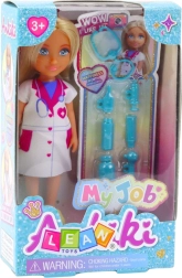 Mini lægedukke med medicinske tilbehør er det perfekte sæt til at fremme empati og omsorg. Dukken er 13 cm høj og iført en hvid kittel med lyserøde detaljer og stetoskop. Børn kan bedre forstå, hvordan arbejdet i sundhedsvæsenet ser ud.