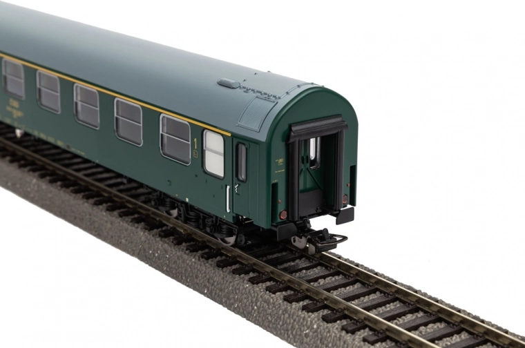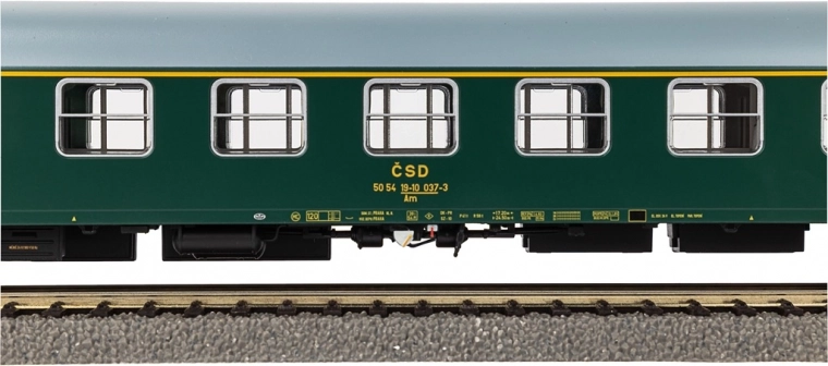 Detaljeret model af ČSD-personvogn 1. klasse, type Y, nyhed 2025, præcis udførelse.
