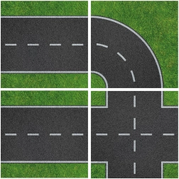 Pladen fås i forskellige designvarianter, inklusive veje, enge og mere. Du kan kombinere den med andre sæt som gårde og stalde fra mærker som Claas, Fendt og andre.