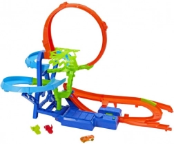Denne actionfyldte Hot Wheels-bane leverer høj fart med loop, hop og mulighed for spektakulære sammenstød mellem bilerne. Den motoriserede booster sørger for kontinuerlig kørsel, og med retningsskifteren kan du let tilpasse udfordringerne og løbets forløb. Tilføj flere 1:64-biler og se, hvem der klarer loopet hurtigst – og hvornår den spændende kollision sker.