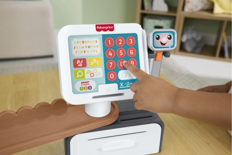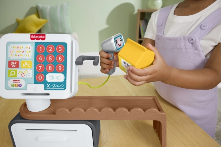 talende kasseapparat Fisher‑Price med scanner og Smart Stages (cz/sk/eng/hu/pl)
