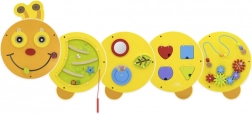 Det træbaserede vægspil Larve Junior er et fremragende valg til meningsfuld leg for børn fra 18 måneder. De farverige elementer og de forskellige aktiviteter fanger straks opmærksomheden, mens den solide vægkonstruktion sparer plads og sikrer sikker brug.