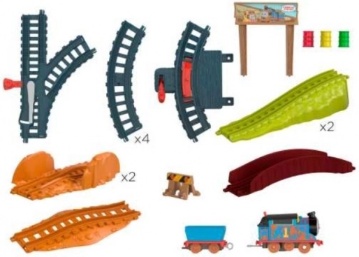 - Motoriseret lokomotiv og baneldele er kompatible med alle Thomas og venner-baner, undtagen trælinjen. Yderligere sæt sælges separat, afhængigt af tilgængelighed.