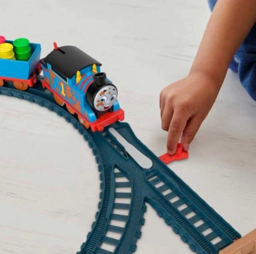 Førskolebørn kan tage på eventyr med deres favorithelt fra Thomas og venner takket være dette motoriserede sæt fra Fisher-Price. Skub kontakten og send Thomas ud på en tur med vogn ad den mudrede og ujævne bane og over broen.