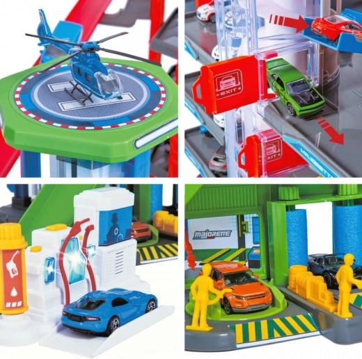 Den store legegarage Super City har en imponerende bredde på næsten 1,30 m og er et helt nyt flagskibsprodukt i Majorette-universet. Den tilbyder syv legeområder og op til 35 parkerings- og opbevaringspladser, hvilket gør det muligt for børn at skabe deres egne bil-eventyr.
