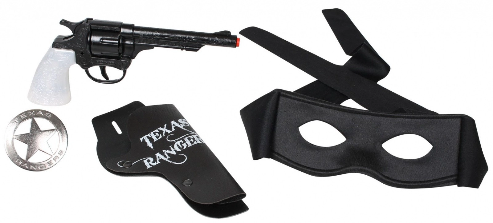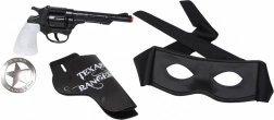 Træd ind i den vilde vest med vores cowboy-sæt, der indeholder en metalrevolver til 8 skud, hylster, cowboymaske, badge og bælte. Ideelt til børn fra 3 år.