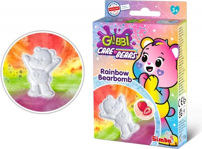 Skab et magisk og sjovt bad med Glibbi Care Bears Regnbue! Læg forsigtigt Glibbi i vandet og se den flerfarvede regnbueeffekt udfolde sig: