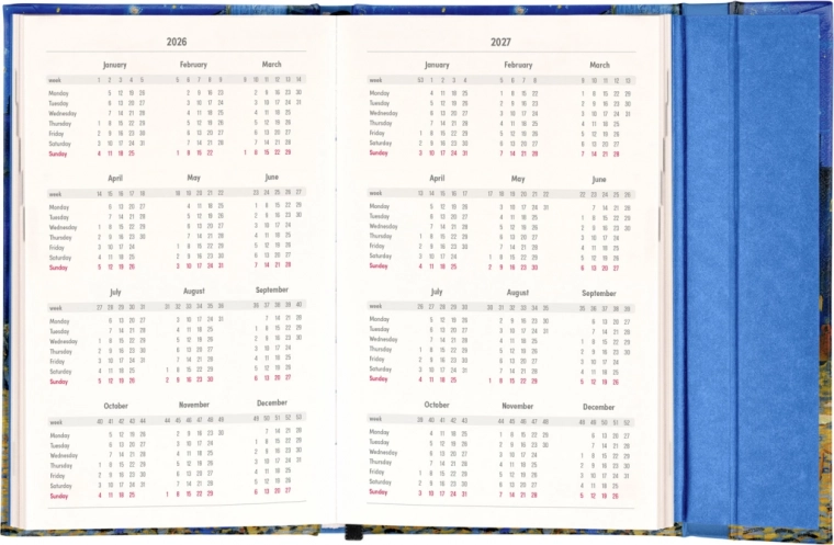 Elegant ugentlig Vincent van Gogh-kalender 2026 med magnetlukning til overskuelig planlægning.