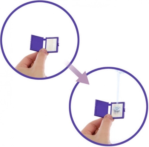 - Hæld iskoldt vand i kedlen og se, hvordan den skifter farve fra lyserød til lilla og fremtryller krystaller.