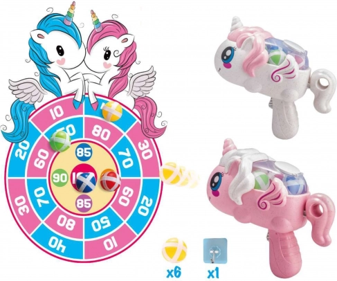 WOOPIE dartspil med enhjørning-affyrer. Udvikler præcision og koordination. Ideelt til børn fra 3 år. Sikkert og attraktivt legetøj.