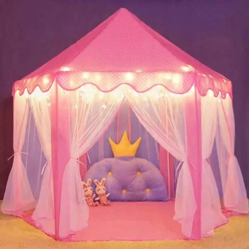 Prinsesseslottet tilbyder rigelig plads til leg, hvor yndlingslegetøj, puder og endda flere små venner kan være med. Den lette og intuitive konstruktion gør det muligt med hurtig samling og adskillelse, hvilket gør opbevaring og transport nemt.
