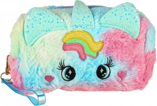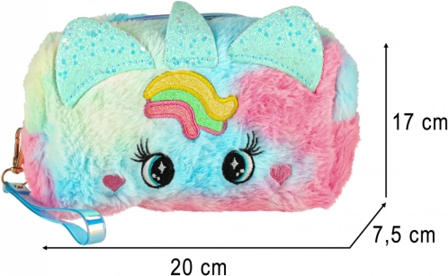 Kosmetikpungen har et sødt design med regnbuemønster og unikke ører, hvilket gør den til et fantastisk æstetisk tilbehør for enhver lille prinsesse.