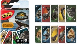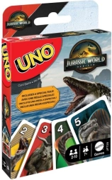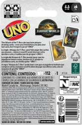 Opdag eventyr i dit yndlingsspil UNO, nu med Jurassic World tema. Gå ind i dinosaurernes verden og nyd de velkendte korttræk beriget med motiver fra den populære filmserie.