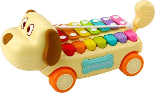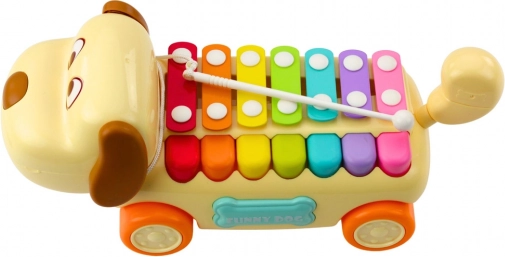 Kørende hund med farvede bækkener er et charmerende og funktionelt musikinstrument-legetøj, der kombinerer læring, bevægelse og sanseoplevelser. Det opmuntrer børn til aktiv leg og gør det muligt at spille enkle melodier.
