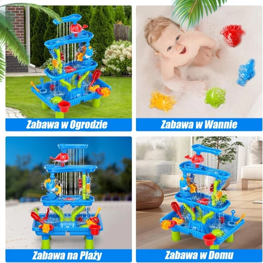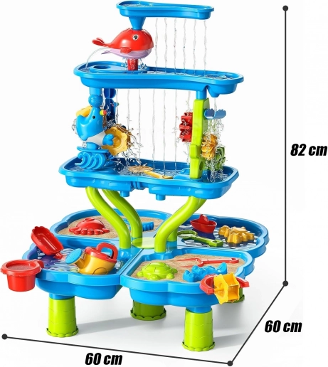 Fantastisk bord- vand- og sandsæt 4-i-1 fra Woopie løfter glæden ved vand- og sandlege til et højere niveau. Dette innovative sæt er en ægte mini-forlystelsespark for dit barn, som sikrer timevis af fascinerende sjov i haven, på stranden eller på badeværelset.