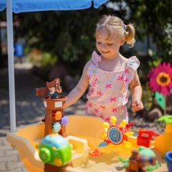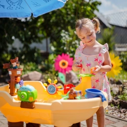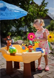 Den robuste plastkonstruktion er let at samle, tømme og rengøre. Takket være XL-dimensioner er bordet ideelt til søskende og venner og udvikler finmotorik, koordinationsfærdigheder og fantasi gennem sanseleg med vand.