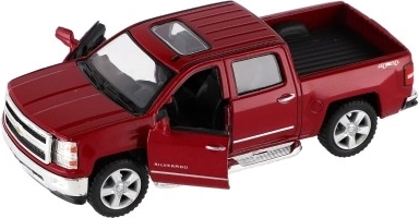 Nyd en detaljeret replika af den ikoniske pick-up CHEVROLET Silverado 2014. Karrosseri i metal med plastdetaljer, præcis lakering og troværdige proportioner vil glæde både små chauffører og samlere. Bilen har åbningsbare døre, så du kan se det gennemarbejdede interiør.