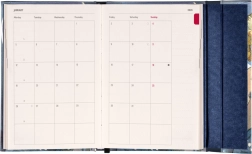 Dagbogen indeholder også månedlige oversigter, som er ideelle til planlægning af ferier, og indeholder internationale helligdage.