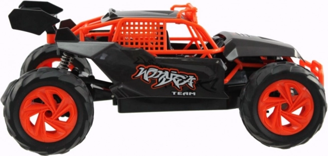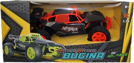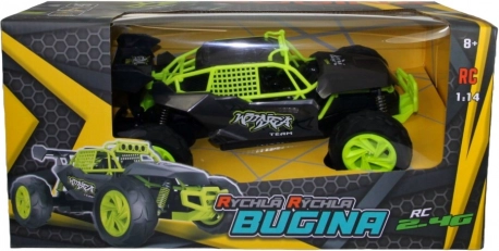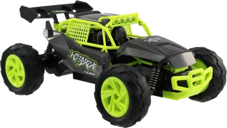 Oplev adrenalin på enhver bane med denne offroad RC-buggy i skala 1:14. Den tilbyder topfart op til 25 km/t, 2,4 GHz fjernbetjening med rækkevidde på 30–40 m og støddæmpere med absorbering på begge aksler for en jævn kørsel selv i krævende terræn.