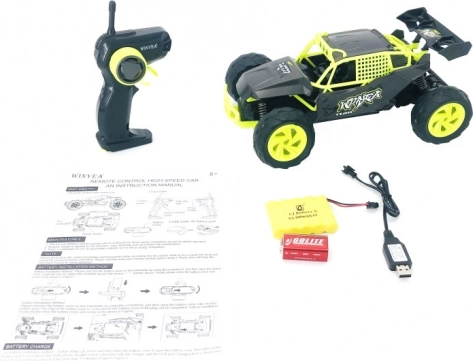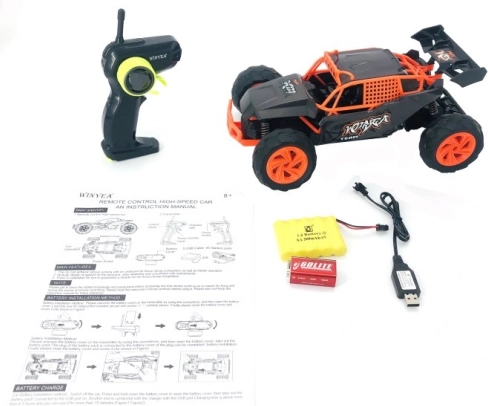 Denne kraftfulde RC-buggy er bygget til både fart og holdbarhed. Takket være professionelt racerschassis og højhastighedsmotor får du dynamisk acceleration, præcis styring og stabilitet på løse underlag. Det realistiske look med robust ramme og store hjul understreger bilens sportslige karakter.