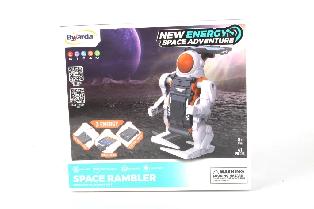 Rumbesøger er en sjov og lærerig bilmodel, der tilbyder tre måder at få strøm på: elektrisk energi for stabil drift når som helst, solenergi til solrige dage og saltvand som et smart eksempel på en kemisk reaktion, der genererer energi. Samlingen tager cirka 1–2 timer og kan klares af begyndere.