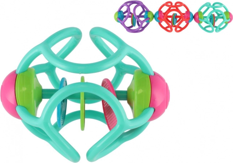 Let og farverig rangle formet som en bold, der også fungerer som en bidering. Let at holde og producerer en blid raslen, hvilket fremmer barnets sanseudvikling.