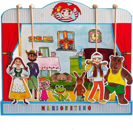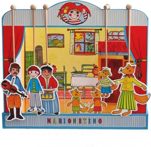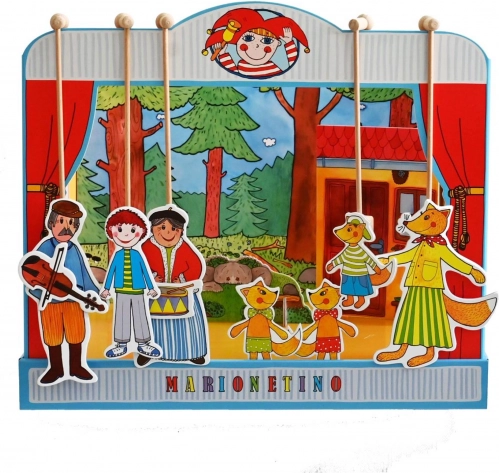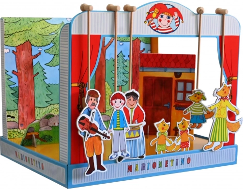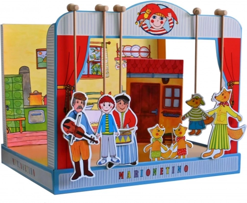 Sættet er lavet af høj kvalitet bogbinderpap, træ og lamineret karton, hvilket sikrer dets holdbarhed og lange levetid. Ideelt til yngre børn, der lige er begyndt på teatret, og til hele familiens underholdning.