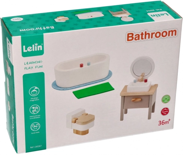 Badeværelsesmøbler til dukkehuset tilbyder et smukt design og giver dine børn mulighed for at udvikle deres kreativitet under legen. Velegnet fra 3 år.